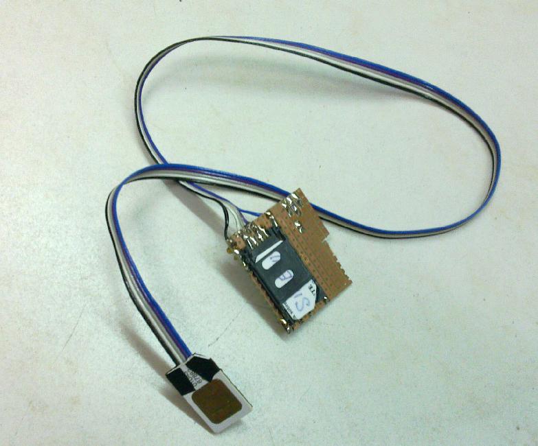 carefully grind out the plastic to expose back of the contacts of the SIM. Then solder a thin