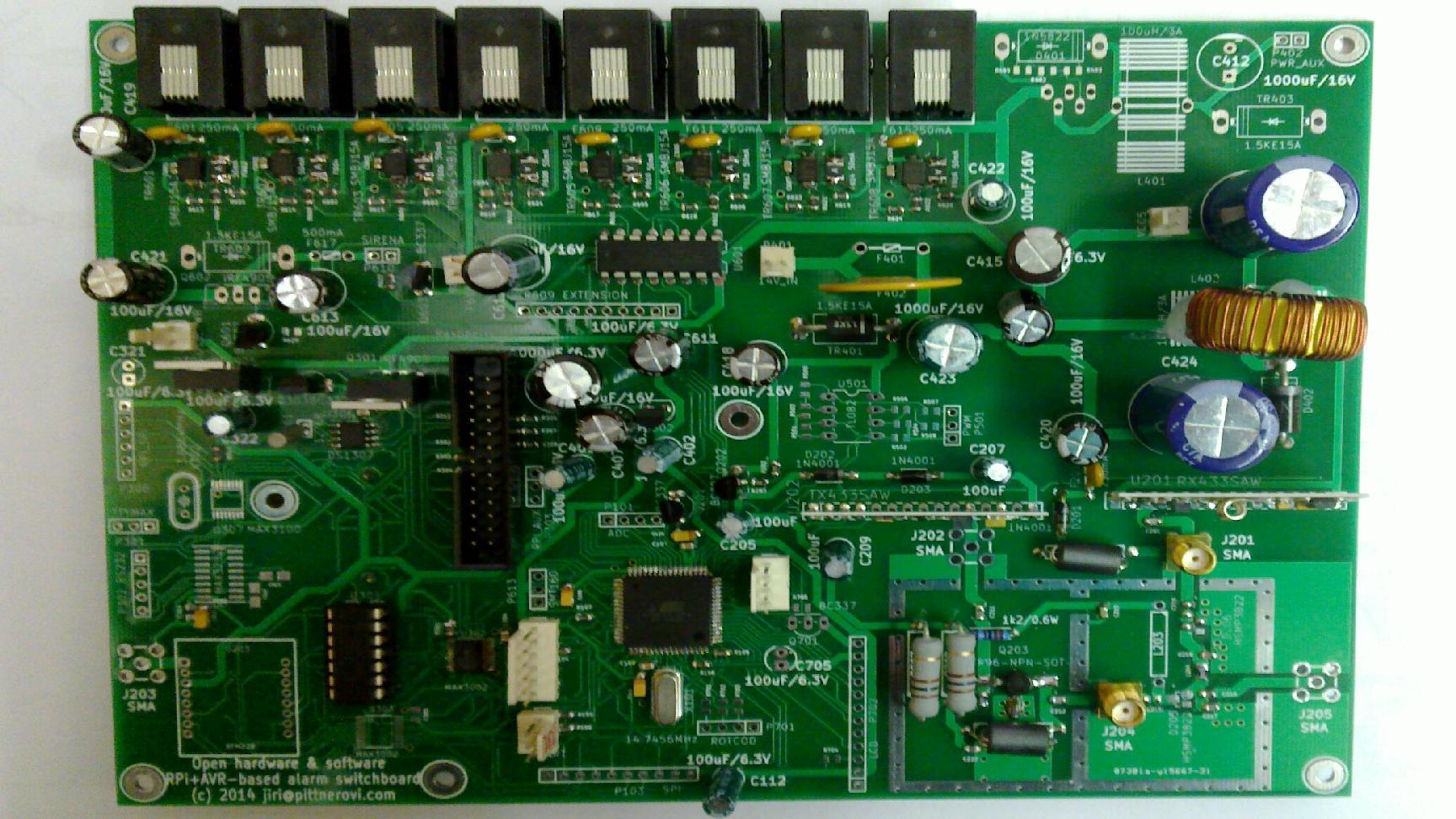 Open hardware/open source home automation and alarm switchboard based on Raspberry Pi and ATmega128