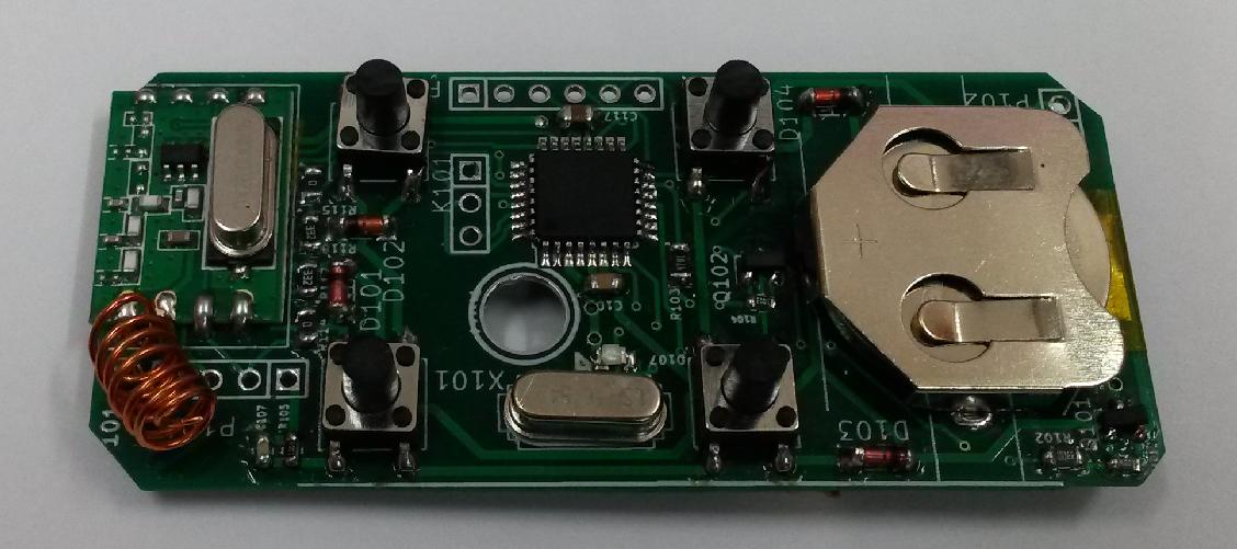 As the remote is powered from CR2032, I have selected MCU ATmega168p at low frequency, which can operate from