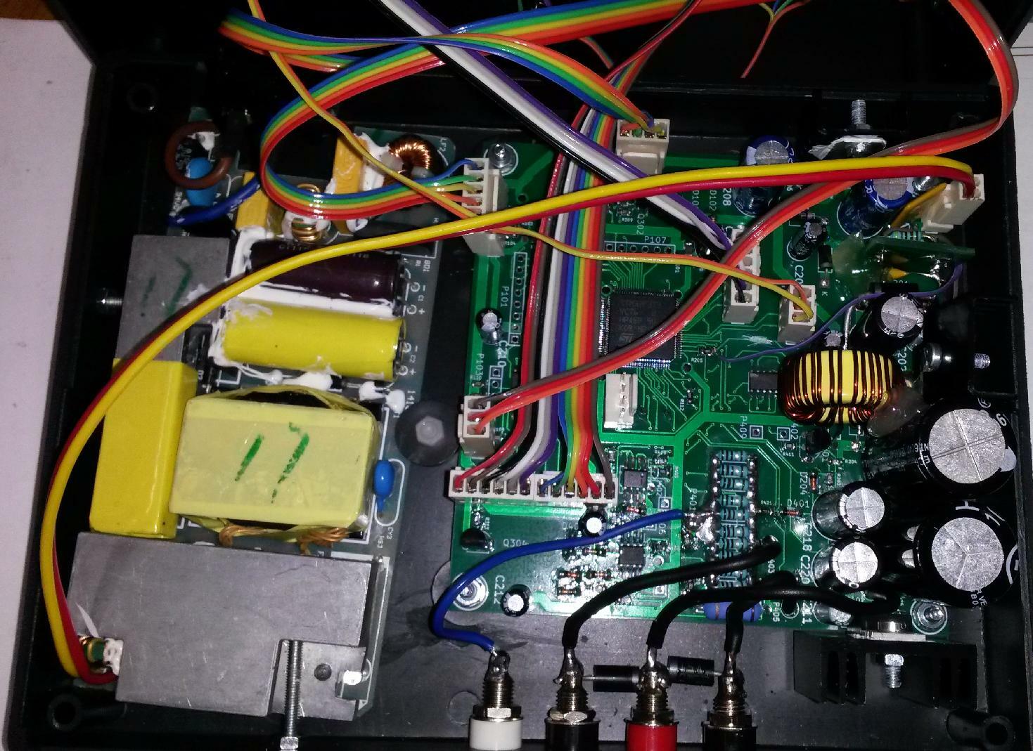 On the left you can see the mains power supply, which was taken from a 3A rated laptop DC adapter and its voltage was lowered