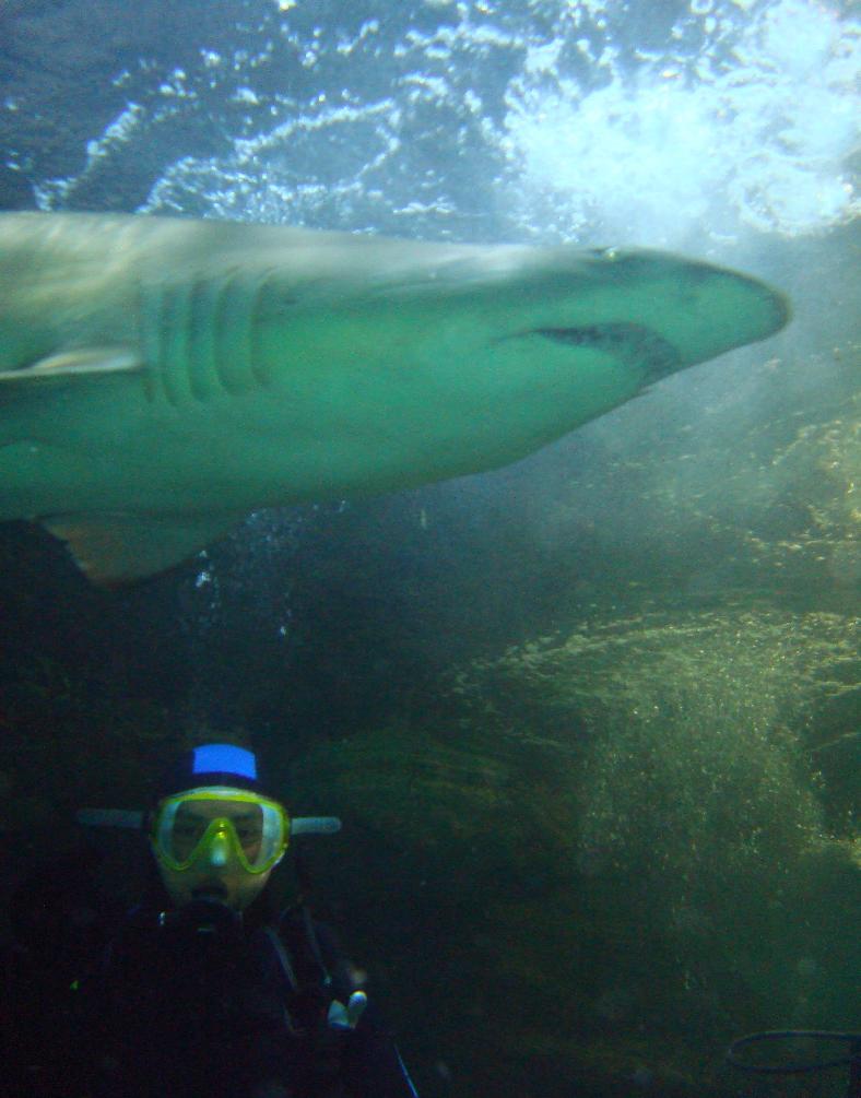 This is me with a grey nurse shark in Sydney; this dive was certainly a more exciting option to the default conference excursion.